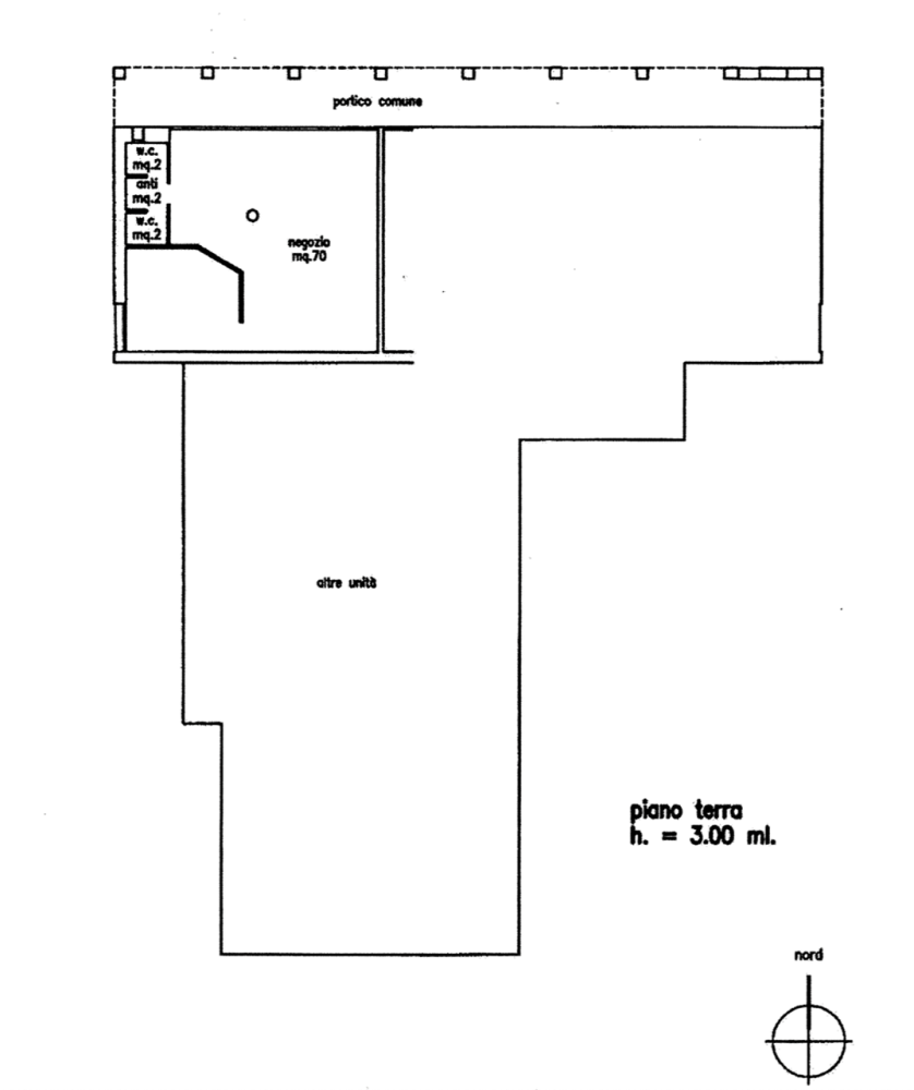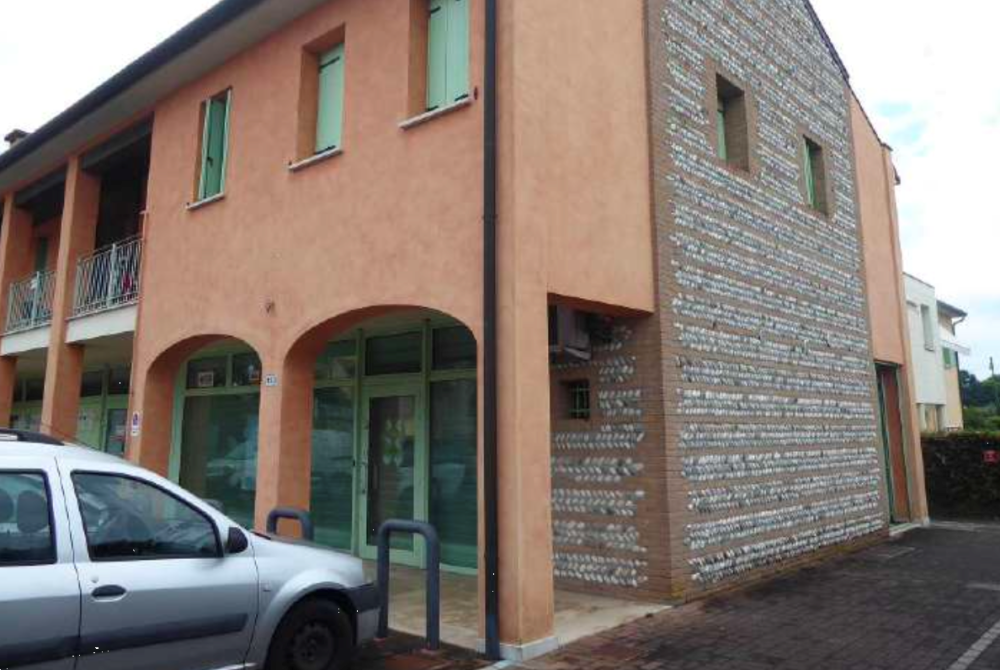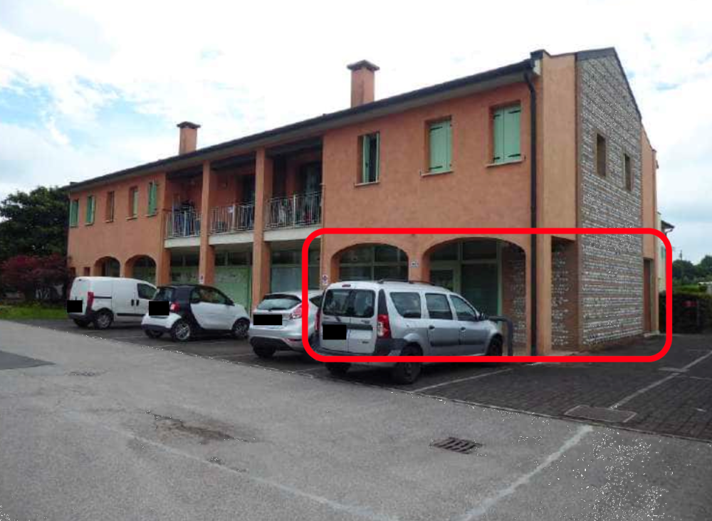 Immobile a destinazione commerciale al piano terra con pertinenziali tre posti auto scoperti facenti parte del condominio La Sorgente situato a Breda di Piave (TV), frazione Saletto in Piazza Vittorio Veneto, l'unità ospita un ampio vano, un retro-negozio con porta secondaria di uscita verso l'area scoperta condominiale, un locale servizi igienici costituito dall'antibagno e da due wc.