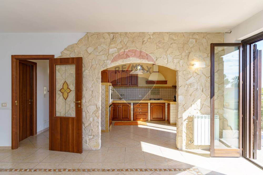 Accedendo dall'ingresso troviamo un ampio e luminosissimo doppio salotto, che accede alla cucina abitabile in muratura completamente attrezzata di elettrodomestici.