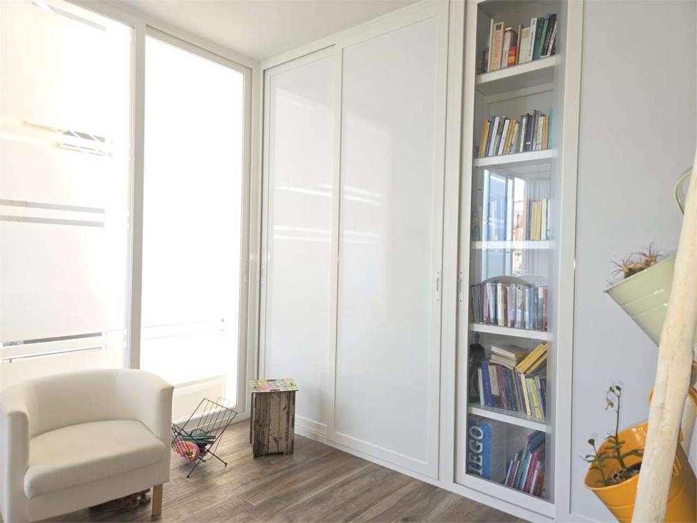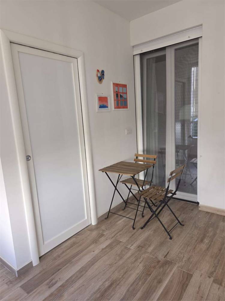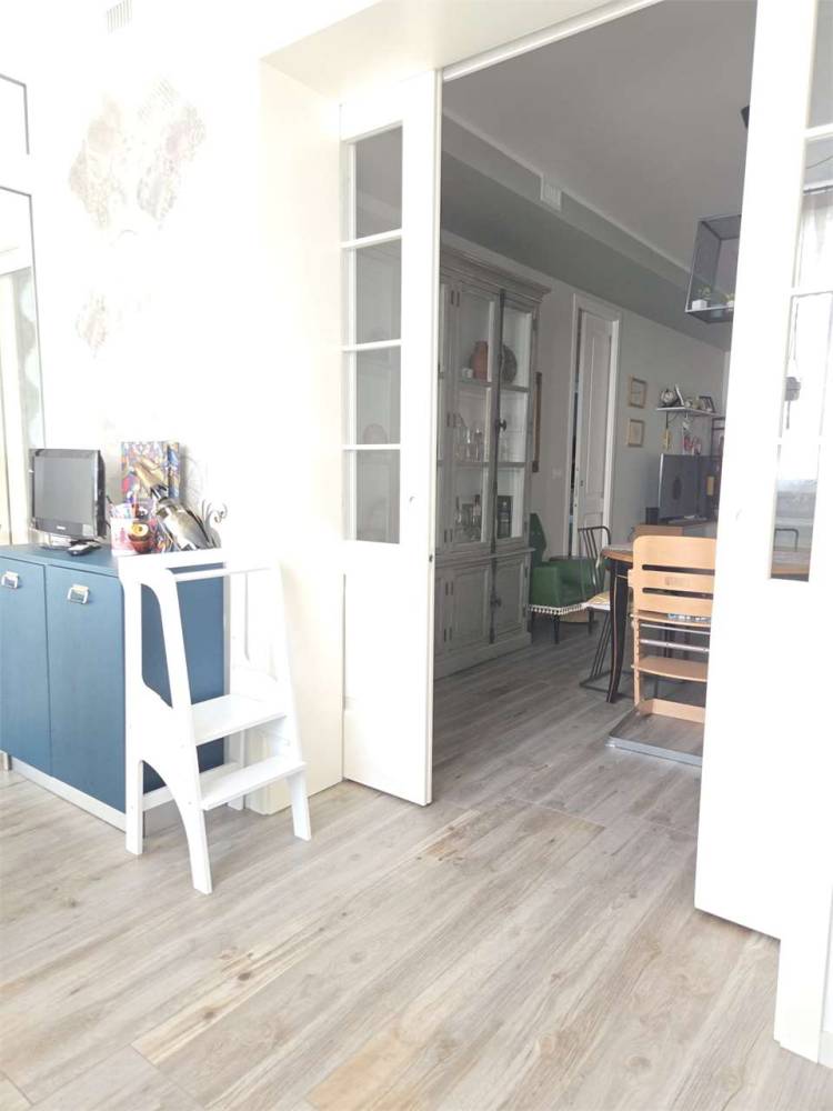 Rifiniture: porta d'ingresso blindata, riscaldamento e raffrescamento al pavimento, impianto canalizzato per deumidificatore, pavimentazione in gress porcellanato effetto parquet, videocitofono, infissi in pvc doppio vetro con apertura vasi stasi, zanzariere, tapparelle elettriche, tende da sole, impianto d'allarme, due porte a scrigno per accedere nella zona tinello, fracasè, fibra e pannelli solari condominiali.