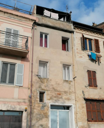 Edificio cielo-terra del centro storico via Vicolo del Gambero nel comune di Petritoli (FM).