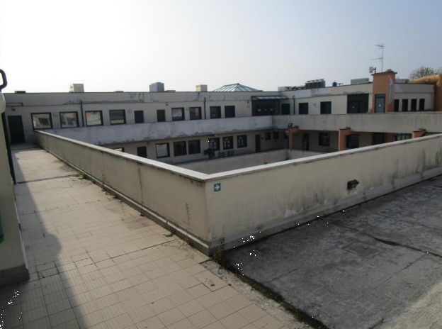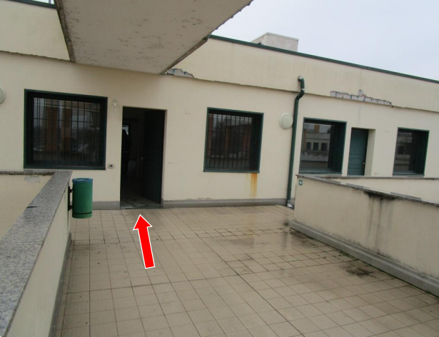 La prima porzione comprende un ampio atrio d'ingresso, una zona archivio, un servizio igienico e un locale principale adibito a ufficio.