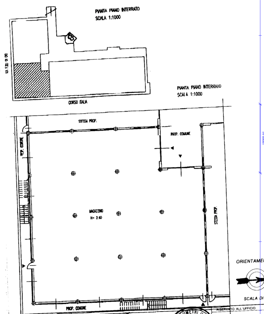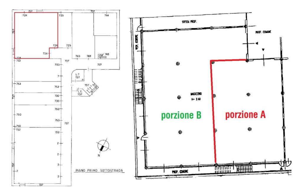 Anch'esso con accesso carraio dal corsello comune e uscita di emergenza tramite l'intercapedine comune, è costituito da un grande locale unico con pianta a L.