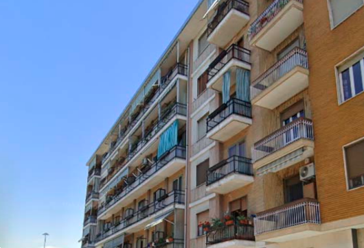 L'immobile è ubicato al quinto piano di un edificio condominiale munito di ascensore ed è composto da un ingresso su disimpegno, una cucina / soggiorno, due camere ed un bagno oltre a due balconi.