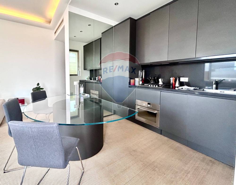 L'appartamento è composto da ingresso su soggiorno doppio con cucina a vista e balcone, ampia camera matrimoniale con angolo studio, bagno finestrato con doccia, seconda stanza con angolo lavanderia e secondo bagno cieco. Completa la proprietà una cantina di pertinenza.