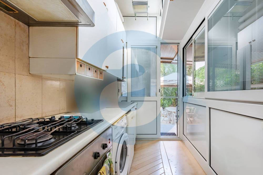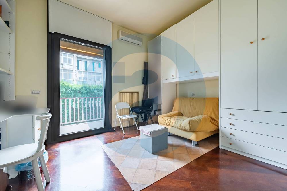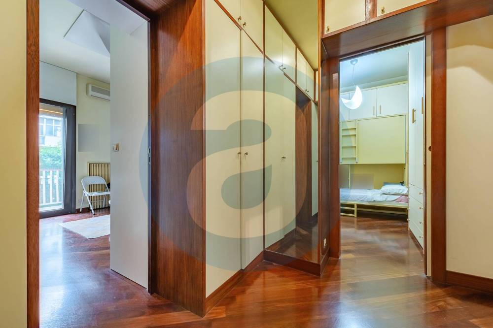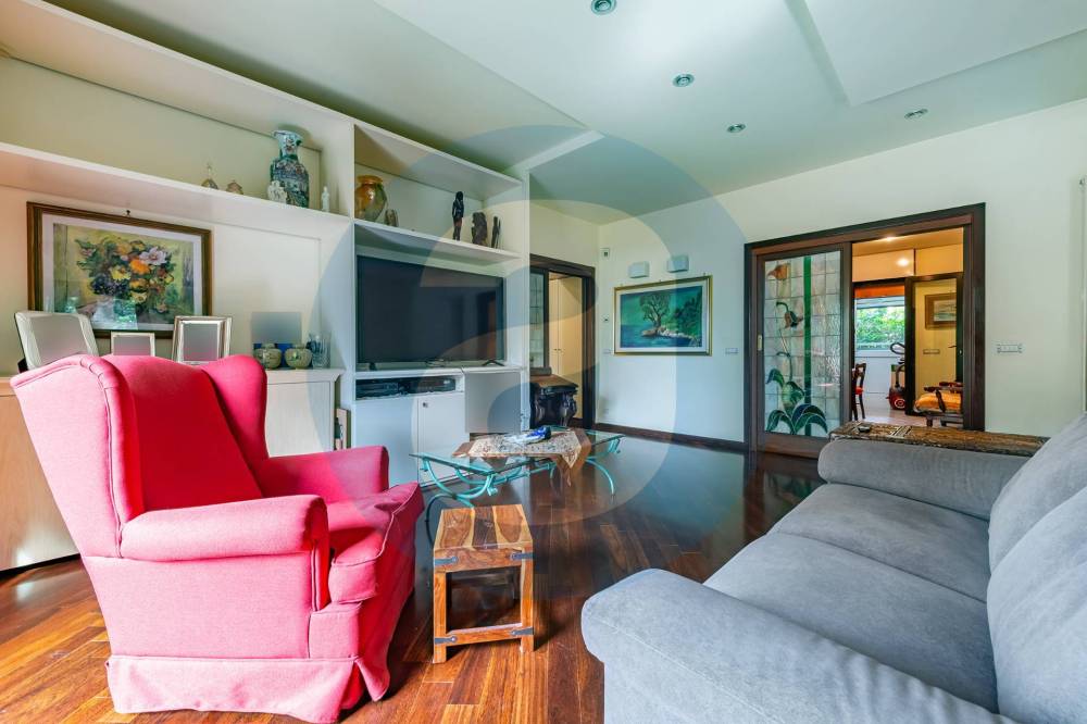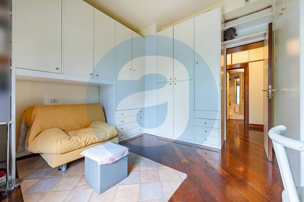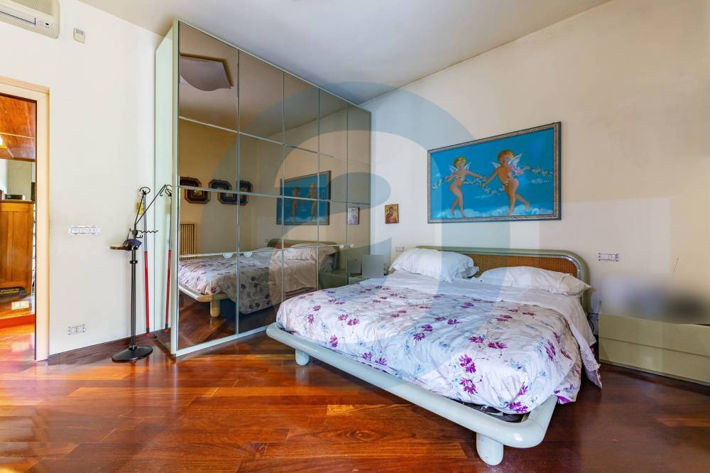 ESTERNO: Appartamento al piano rialzato in un edificio di otto piani, dotato di ascensore. Superficie esterna di 250 mq composta in parte da giardino e in parte da area coperta da tettoia regolarmente autorizzata. Cantina di 8 mq a piano interrato. Oltre al doppio ingresso da pianerottolo è presente un ingresso autonomo, direttamente dal giardino.