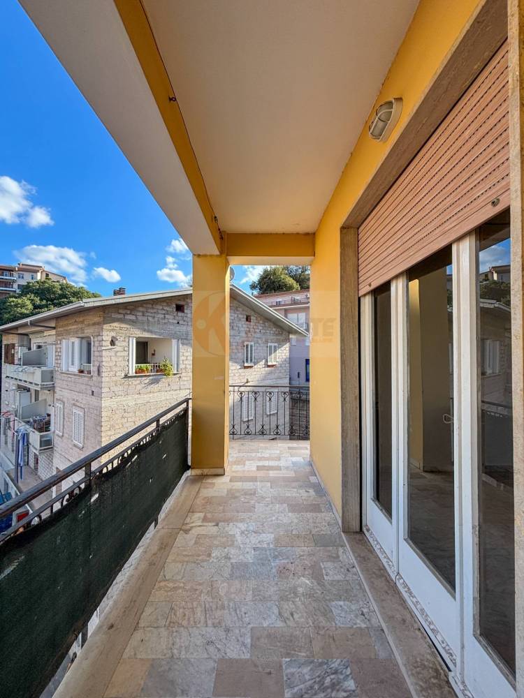 Lingresso ti accompagna in una zona giorno luminosa, dove la sala si apre su un terrazzo panoramico: uno spazio dove respirare, osservare il paese che si stende davanti e ritagliarsi momenti di pace