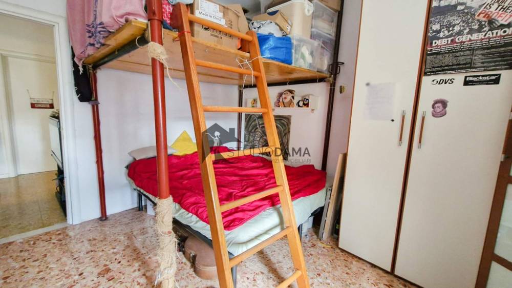 Interessante la pavimentazione molto suggestiva e elegante con graniglia storica e parquet vintage di pregio nella camera da letto matrimoniale principale.