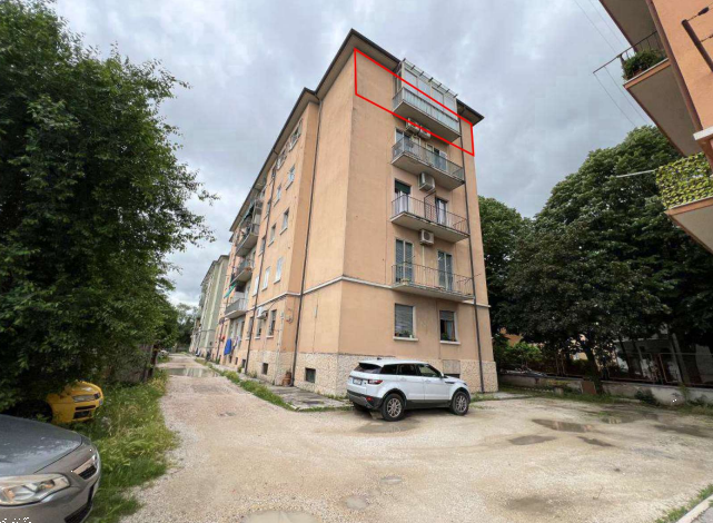 L'immobile è situato al quarto piano ed è composto da soggiorno, cucina, due camere da letto, un bagno, disimpegno e due terrazzi, per una superficie complessiva di circa 95 mq.