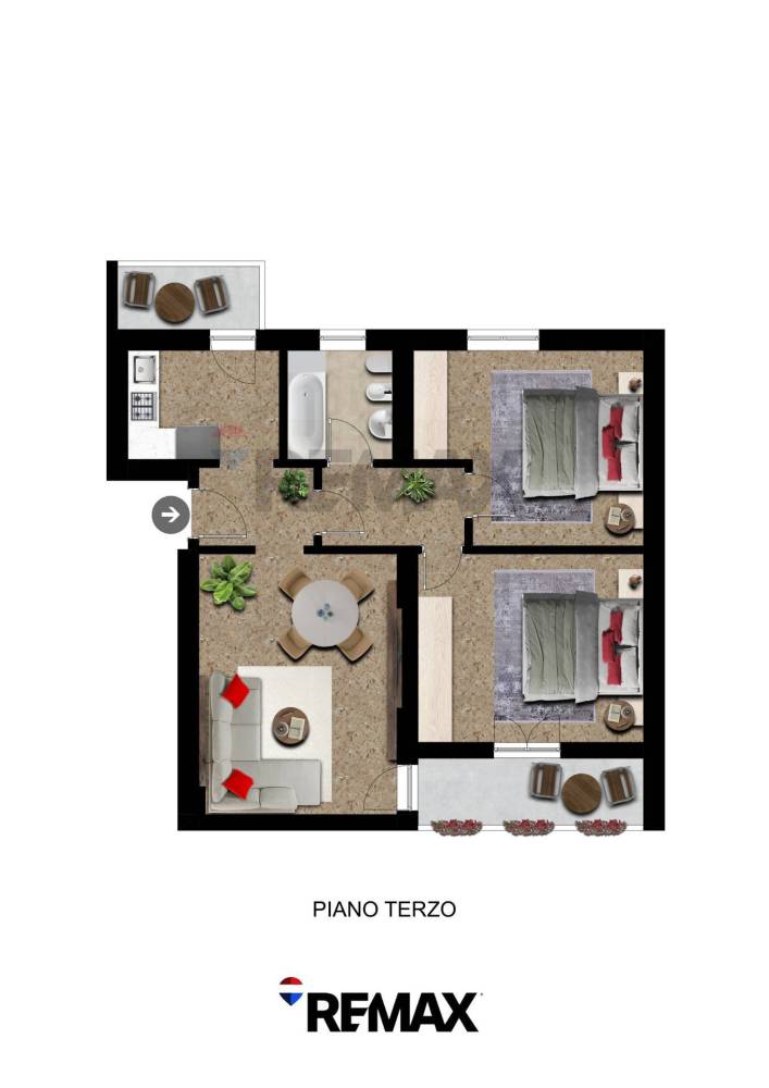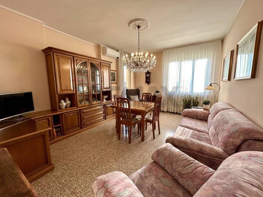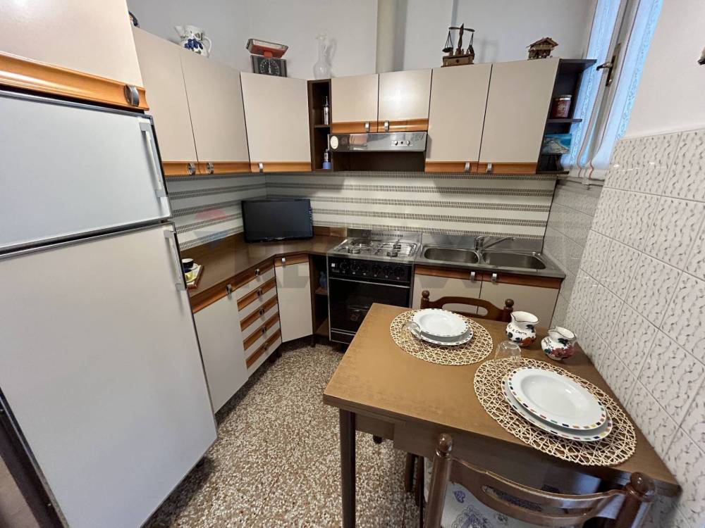Limmobile viene venduto completo di arredo, ha una superficie di circa 75 mq ed è composto da ingresso, soggiorno spazioso e molto luminoso con accesso diretto al balcone, cucina separata con uscita su un secondo balconcino, disimpegno, due grandi camere matrimoniali e bagno finestrato con vasca. La casa è pronta fin da subito per essere abitata e si presenta con serramenti in legno con doppi vetri, pavimenti in graniglia, aria condizionata con pompa di calore in soggiorno e in camera, riscaldamento centralizzato con valvole termostatiche che registrano il consumo effettivo di ogni locale.