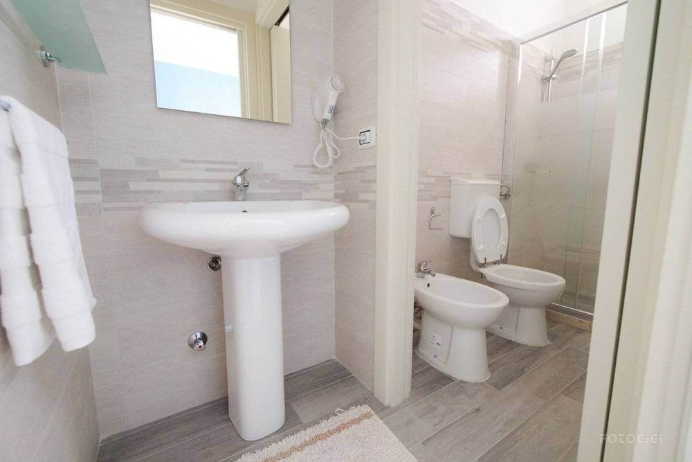 L'immobile ha accesso indipendente su scoperto di proprietà privata; l'ingresso ospita un vano pluriuso soppalcato e finestrato, ideale sia come ripostiglio sia come stanza d'appoggio per il gestore della struttura, inoltre secondo ripostiglio; da comoda scala si raggiunge l'abitazione principale che si sviluppa su una superficie di oltre 150 mq ed è composta da ingresso su luminosa sala adibita a reception, dotata di ampio balcone, disimpegno, sei camere da letto di ampia metratura, luminosissime e tutte con bagno privato. Quasi tutte le stanze godono di balcone o terrazzino privato, ideale per trascorrere le calde serate estive.