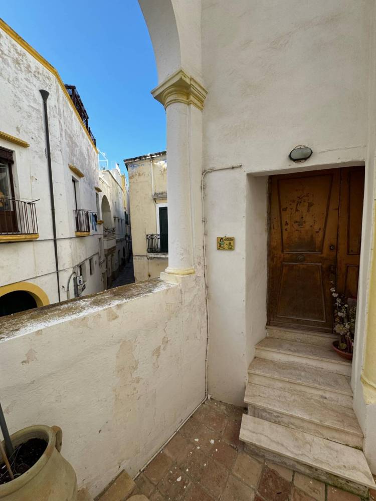 L'ingresso, condiviso solo da un'altra unità abitativa, è rappresentato da un ampio androne a pian terreno tramite il quale si accede a una comoda scala comune; l'abitazione è posta al primo piano, con accesso da una splendida balconata con affaccio sulla via principale.