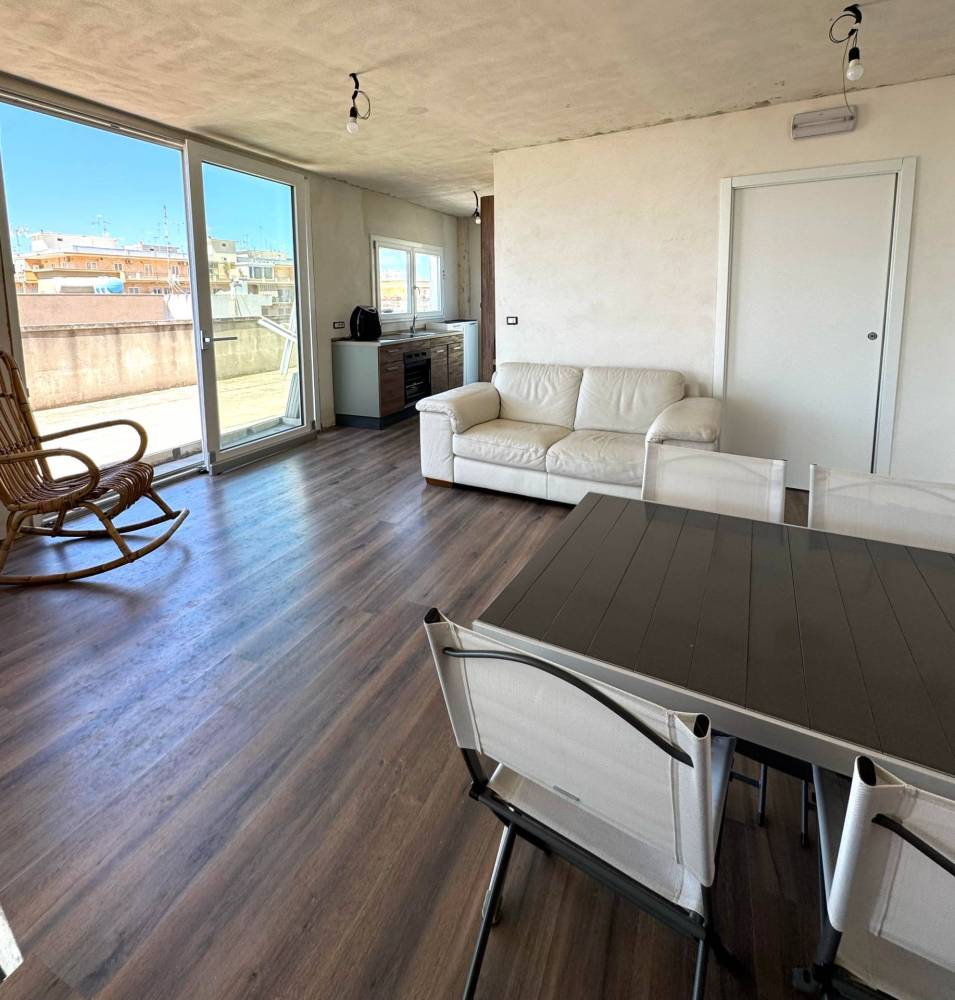In zona centralissima ma allo stesso tempo in posizione riservata, a pochi metri sia da Corso Roma sia da Lungomare Galilei, si vende attico posto al quarto ed ultimo piano di uno stabile edificato nel 2017 con materiali di ultima generazione e dotato di ascensore.