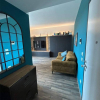Composto da una luminosa e spaziosa e luminosa zona living/soggiorno con cucina a vista che si affaccia sul terrazzino. Diviso da un disimpegno abbiamo la camera matrimoniale e un bagno finestrato completo di tutti i sanitari sospesi e box doccia.