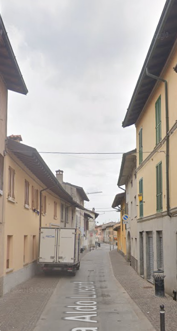 Appartamento al primo piano in Via Aldo Lusardi, a Calvenzano (BG), composto da soggiorno con cucina a vista, disimpegno, bagno, camera matrimoniale, pratico ripostiglio e spazioso sottotetto collegato internamente.