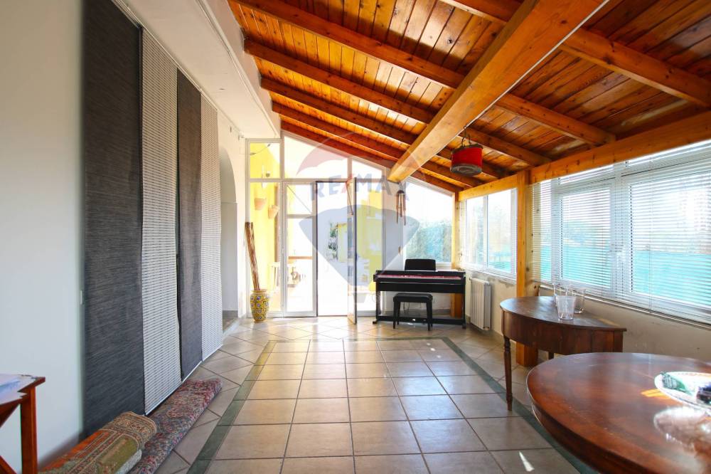 Al piano terra, attraverso una veranda chiusa, si accede al soggiorno con camino funzionante , una zona living ampia e confortevole; proseguendo troviamo la cucina abitabile con annessa lavanderia, a seguire una cameretta, il bagno principale e la camera padronale con piccola cabina armadio e climatizzatore.