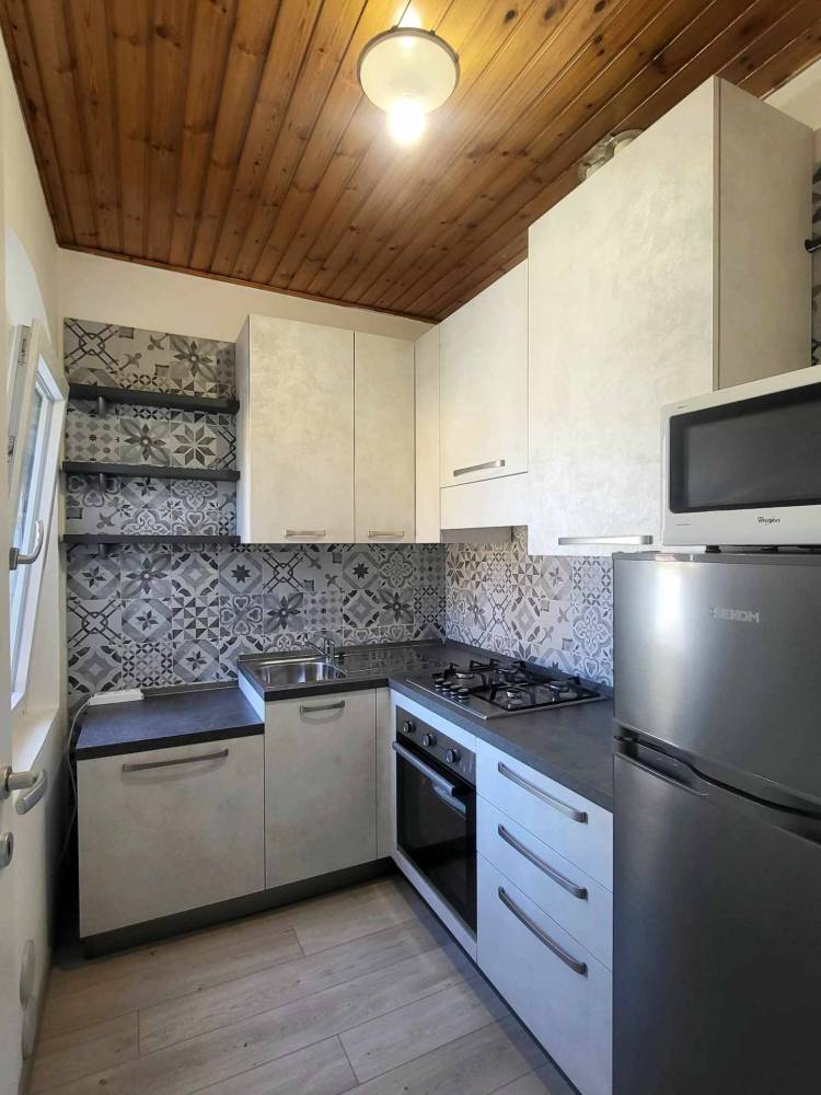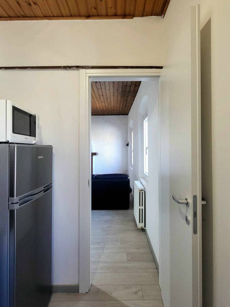 L'immobile, posto al primo e ultimo piano con ingresso indipendente e cantina di pertinenza, si presenta in ottimo stato: ingresso su zona giorno, cucinotto, ampio ripostiglio, bagno finestrato con doccia e vasca, camera matrimoniale. L'appartamento è molto luminoso; infissi in pvc e vetrocamera, scuretti in legno esterni. Porta blindata.
