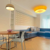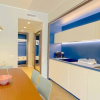 All'esterno, l'eleganza delle finiture in bianco si fonde con la trasparenza dei balconi dotati di parapetto in vetro. All'interno, l'ambiente accoglie con il suo arredo moderno in stile liberty, luminose vetrate scorrevoli e rilassanti tonalità blu mare.
