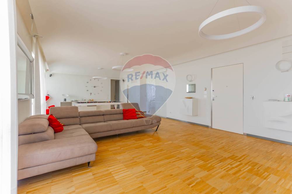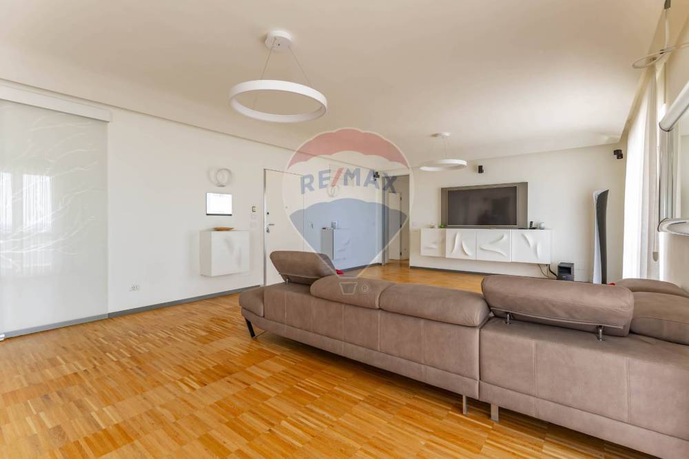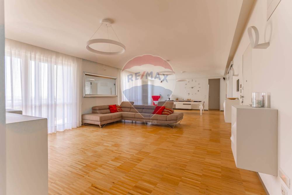 Lingresso si apre su un raffinato soggiorno doppio con affaccio diretto su un ampio balcone terrazzato, perfetto per momenti di relax allaria aperta e convivialità.
