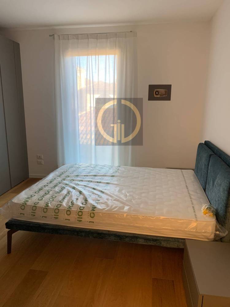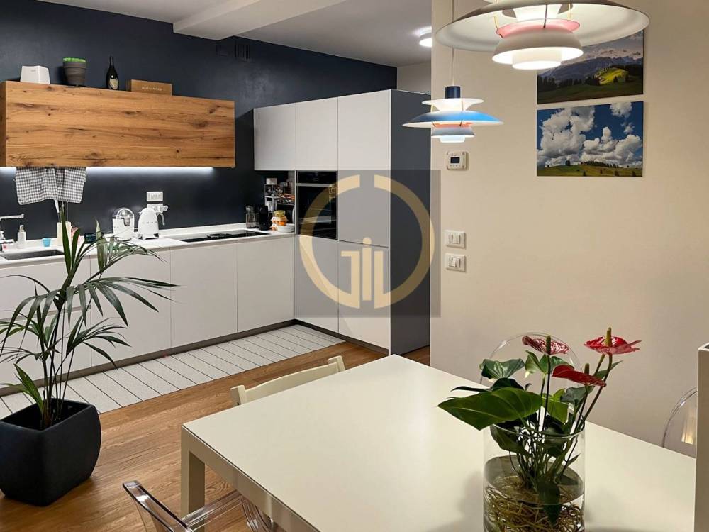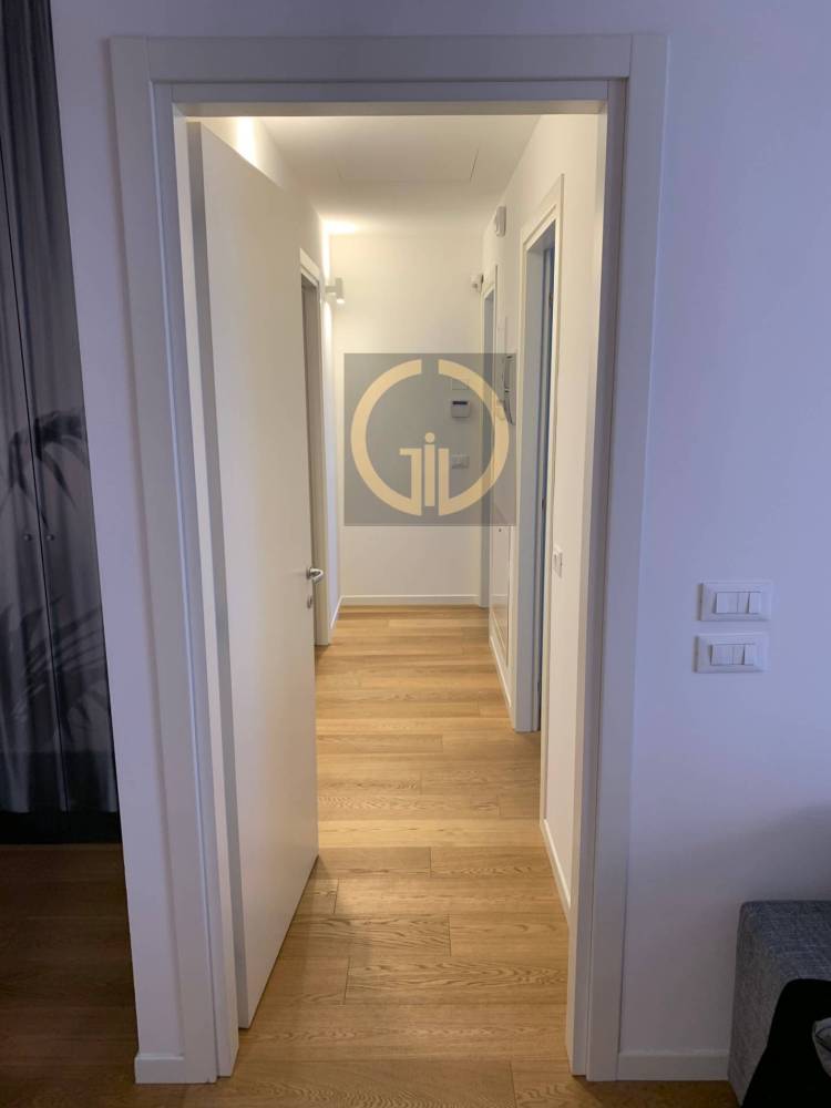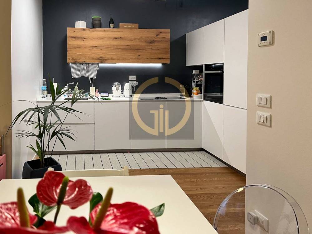Entrando ci accoglie uno spazioso ingresso e una parete attrezzata lo separa da una grande zona living con cucina a vista arredata con elementi di design, due camere di cui una padronale con bagno dedicato, una doppia e un secondo bagno con vano lavanderia.