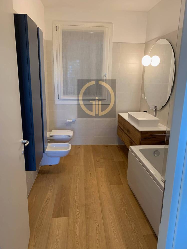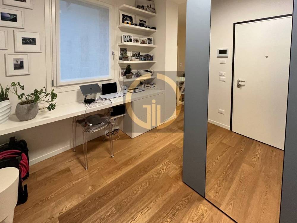 LAppartamento è completamente arredato in ogni sua parte, completo di elettrodomestici, tutto pavimentato in legno di rovere, ha serramenti in legno, riscaldamento a pavimento centralizzato di ultima generazione, impianto di climatizzazione canalizzato e cassetta di sicurezza.