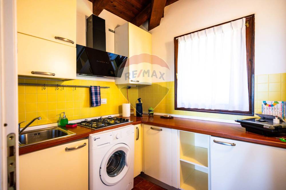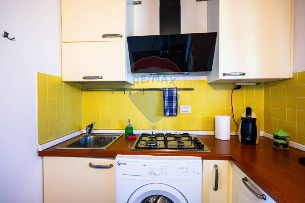 Cucina completamente attrezzata: lavastoviglie, forno compatto, frigorifero con freezer, macchina da caffè Dolce Gusto