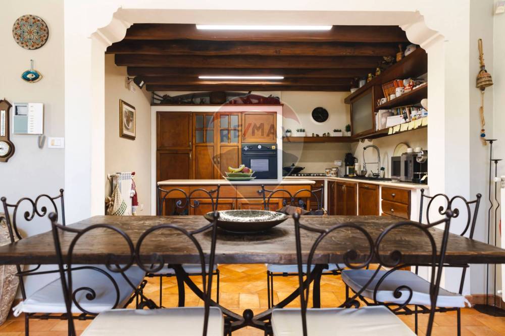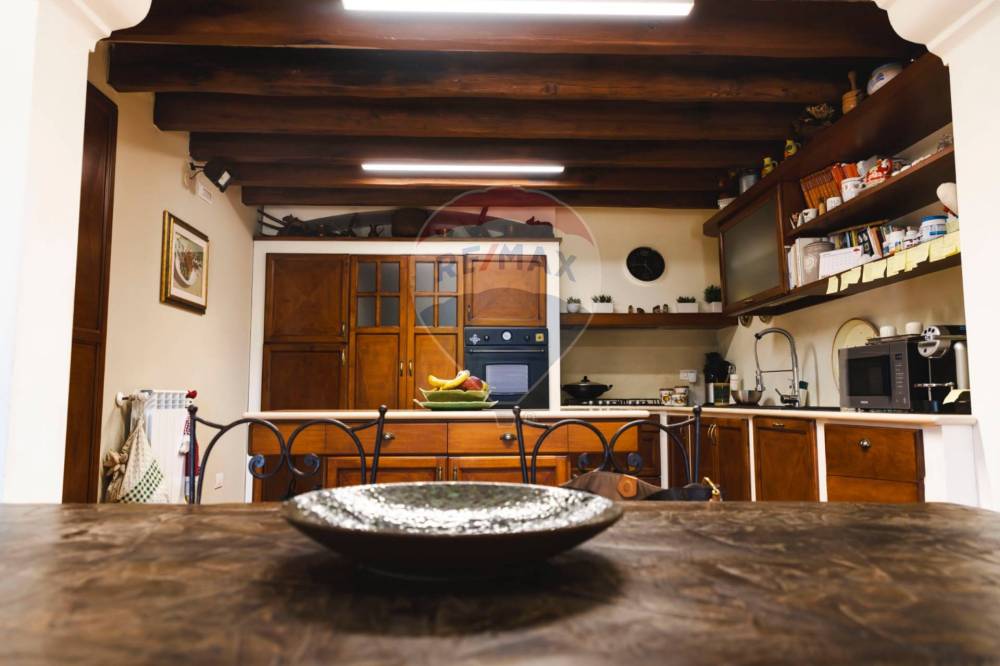 La cucina è un vero gioiello di funzionalità e stile rustico, ideale per gli amanti della cucina e dell'intrattenimento, mentre il salotto, con i suoi comodi divani e una ricca libreria, invita al relax in un ambiente caldo e accogliente. Il design interno combina elementi tradizionali e moderni, creando un ambiente accogliente e familiare.