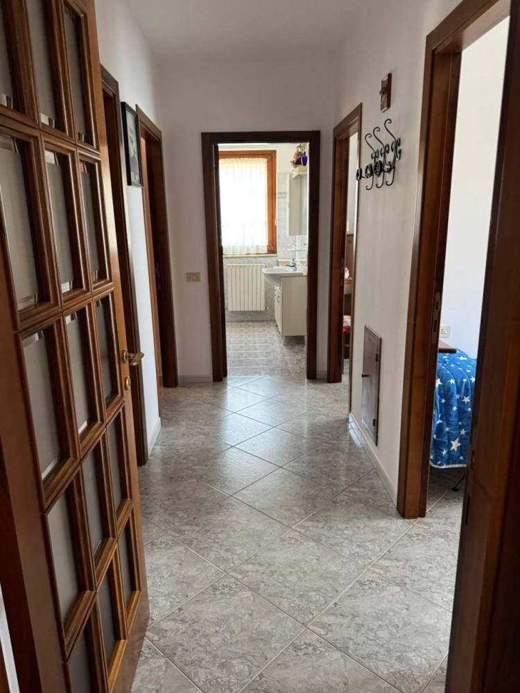 GROTTAMMARE – A circa 800 metri dal mare in zona centrale sopra la statale, quadrilocale di 125 mq coperti situato al primo piano di casa indipendente costruita a fine anni '90, composta da sole due unità abitative. L’appartamento, in buono stato di manutenzione, è così suddiviso: ampio e luminoso soggiorno, cucina abitabile, disimpegno che conduce alla zona notte con tre camere da letto di cui una matrimoniale, una doppia e una singola, due bagni, uno dei quali dotato di vasca idromassaggio. Completano la proprietà un pratico ripostiglio di circa mq 6, una corte di circa mq 160 in parte piastrellata e un garage di circa mq 40 con annesso ripostiglio. L'abitazione è dotata di riscaldamento autonomo a metano, videocitofono, infissi in legno con doppio vetro e camino termo ventilato. Sebbene sia in buone condizioni e abitabile fin da subito, le finiture risalgono all'epoca di costruzione. E’ opportuno un adeguamento degli impianti alle normative vigenti. Possibilità di acquistare, con importo da conteggiare separatamente, di un magazzino di mq 70 posto al piano primo sottostrada. Ottima opportunità per chi desidera ampi spazi e la comodità di una posizione strategica. Rif. 6881 DiLeoImmobiliare