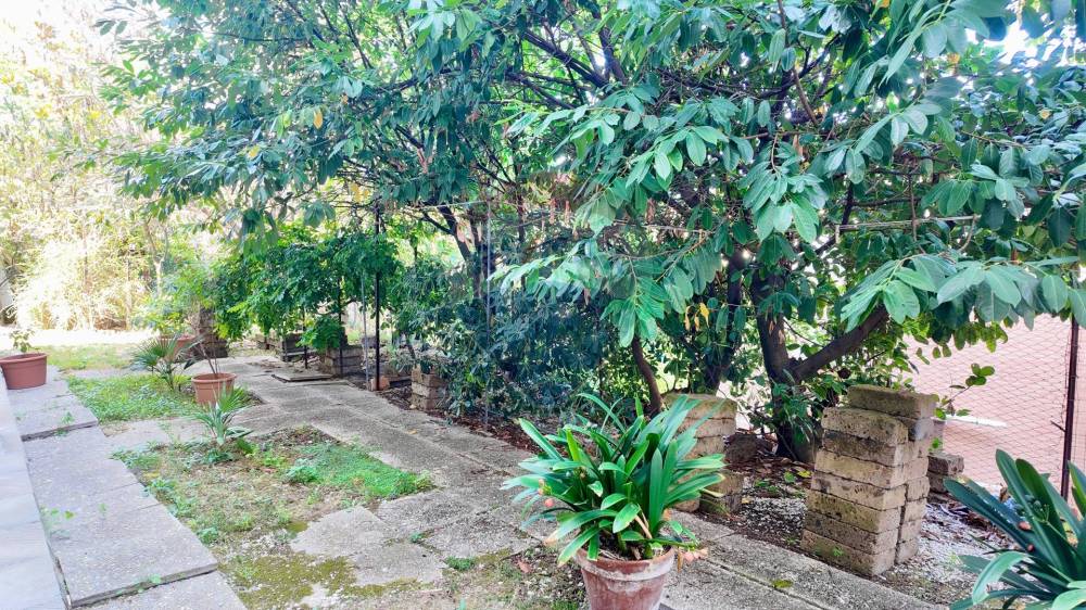 Dalla cucina una piccola loggia si affaccia sul giardino privato, collegato con 5 gradini, e rappresenta un'oasi di verde e tranquillità.