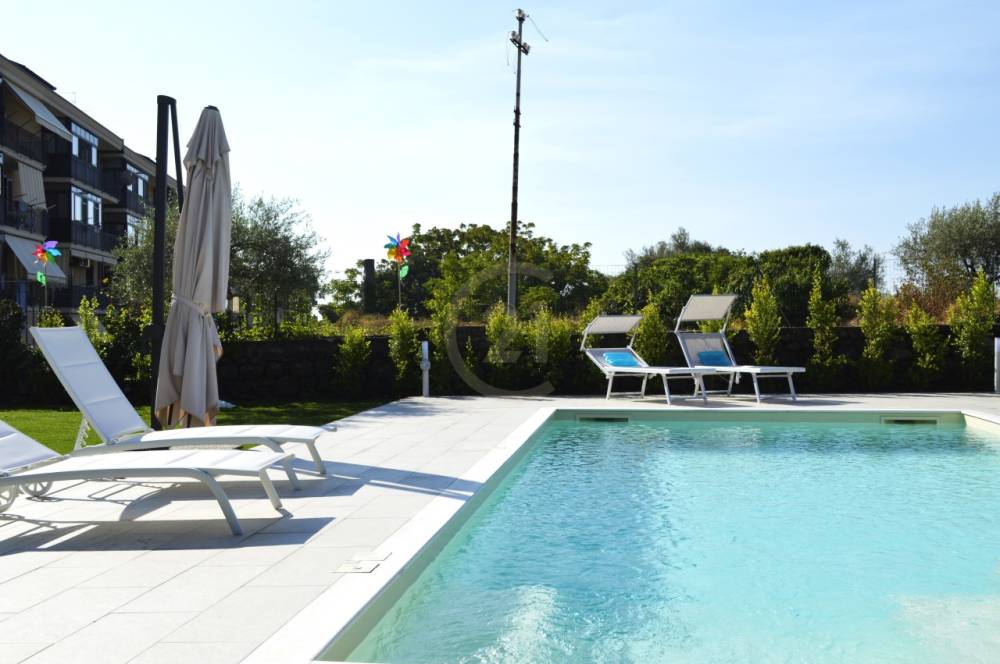 Villa signorile con piscina situata in una delle zone più periferiche di Aci Catena, a 5 minuti dal casello autostradale di Acireale. Distribuita su quattro eleganti livelli, ciascuno realizzato per offrire comfort e raffinatezza, in classe energetica A+ Entrando dal cortile d’ingresso, che include comodi posti auto, si accede alla villa, che colpisce immediatamente per la qualità delle finiture e l'attenzione ai dettagli. Al piano seminterrato, l’eleganza incontra la convivialità in un open-space dalla superficie di 80 mq, dove cucina e soggiorno si fondono in un ambiente luminoso e contemporaneo. Questa zona è stata progettata per accogliere cene intime o piacevoli momenti con gli amici. Al piano terra, un lussuoso salone introduce alla zona giorno principale, dove le ampie superfici e l’architettura degli spazi si esprimono in un'atmosfera sofisticata. Completano il piano uno studio e un bagno di rappresentanza. Proseguendo verso il primo piano si raggiunge la zona notte, uno spazio dedicato al riposo e al benessere familiare. Qui troviamo tre spaziose camere da letto, ciascuna pensata per garantire il massimo della privacy, e due bagni finemente decorati. Tutte le camere godono di balconi privati con vista. Il secondo ed ultimo piano ospita una mansarda abitabile e già rifinita, unico ambiente versatile dotato di lavanderia interna e predisposizione per finestre a tetto. La luminosità naturale può così inondare questo spazio, rendendolo ideale anche per una zona relax o come accogliente area per gli ospiti. Le finiture sono di alto livello: la scala è rivestita con prestigioso cotto fiorentino, mentre in tutti i piani si estende un parquet di prima scelta, che dona calore agli spazi. La villa è termoautonoma, con caldaia di ultima generazione, e dotata di climatizzatori in classe A++ in ogni ambiente. Le ampie finestre sono realizzate con vetri antisfondamento, mentre un impianto d’allarme perimetrale aggiunge ulteriore sicurezza. Impianto fotovoltaico 6kw Il piano della cucina soggiorno gode di una corte esterna attrezzata con un elegante tavolo in ferro battuto, e grandi ombrelloni a protezione di tavolini e poltrone, un angolo perfetto dove ritirarsi per un caffè o una lettura in completo relax. Nell'area giardino una splendida piscina privata rifinita in pietra bianca, dal design elegante e perfettamente integrata nell’ambiente esterno. L’impianto di depurazione è a sale con sistema completamente automatizzato, gestito da due computer indipendenti che garantiscono un’acqua sempre cristallina con il minimo intervento manuale. La piscina è dotata di predisposizione per riscaldamento dell’acqua, ideale per un utilizzo prolungato anche nei mesi meno caldi. Inclusa inoltre la predisposizione per la realizzazione di spogliatoio e bagno con antibagno. Inoltre all'esterno del residence è possibile usufruire di un ampio parcheggio libero, assicurando ulteriore comodità. RIF. 7024