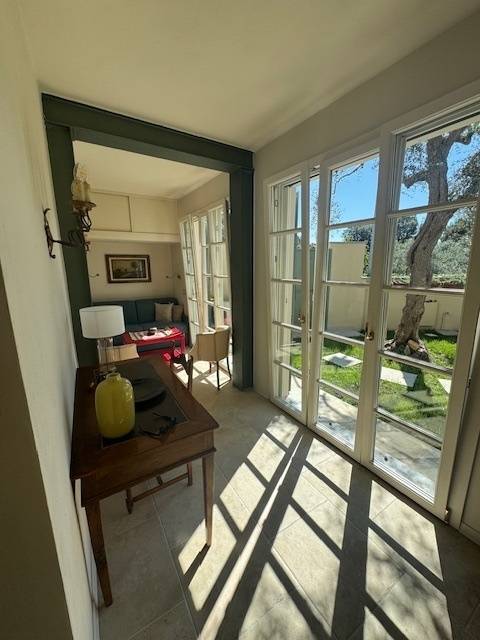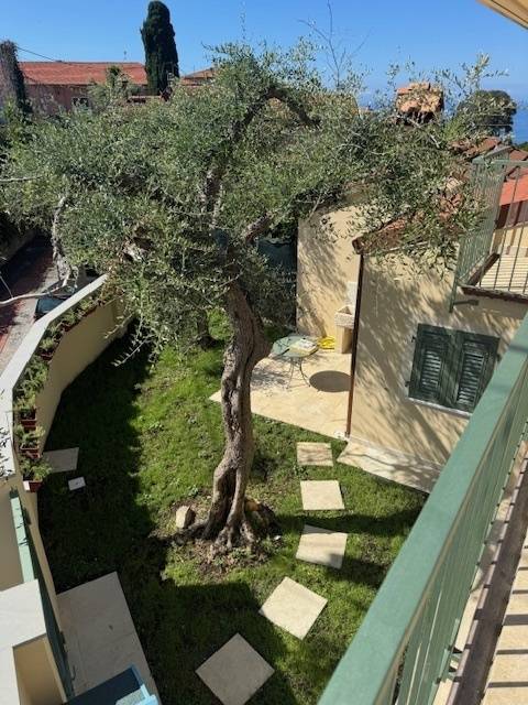 Montemarcello, in zona adiacente al centro ma fuori dal borgo in affitto solo per uso transitorio senza residenza appartamento posto su due livelli composto da ingresso dal giardino privato, soggiorno con zona cottura, servizio, tramite scala si accede al primo piano dove si trova la camera da letto matrimoniale con cabina armadi e la terrazza pranzabile con vista mare.