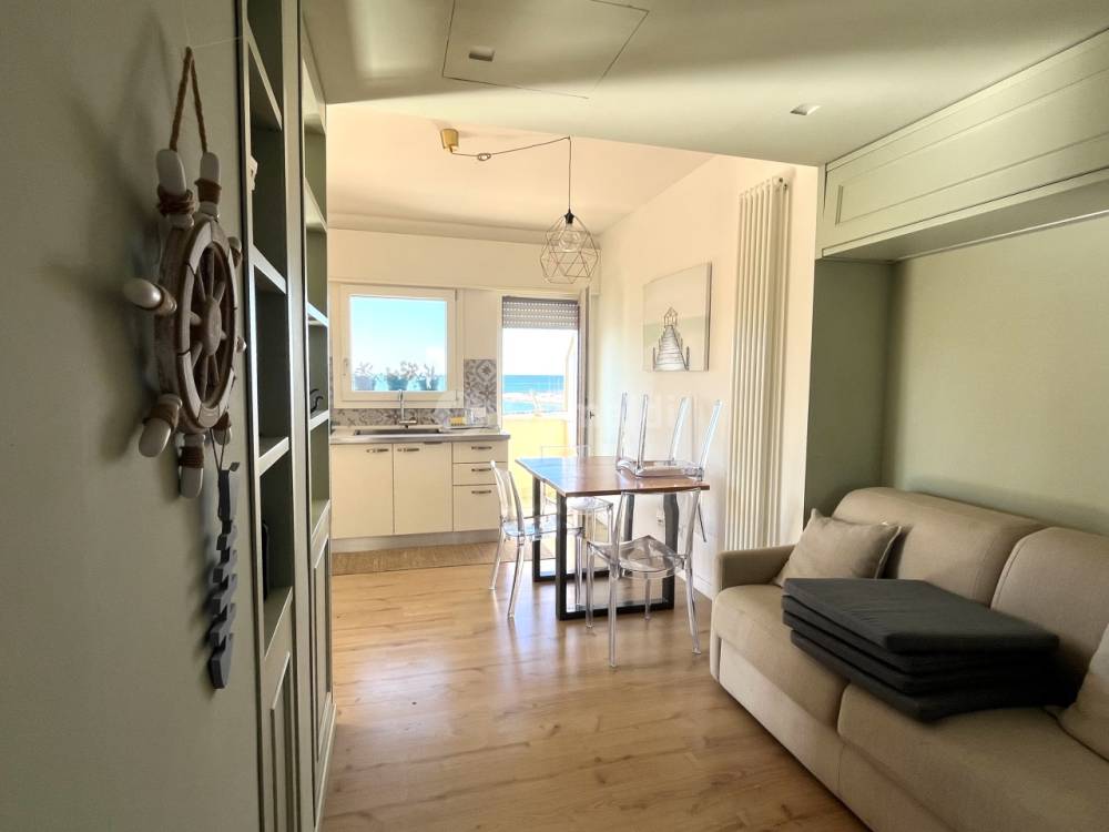 La Grimaldi Immobiliare propone in affitto transitorio a Nettuno in zona centralissima appartamento fronte mare posto al sesto piano di una palazzina. L'immobile è così composto all'entrata troviamo un luminoso soggiorno con cucina a vista con uscita sul balcone con affaccio fronte mare, una camera da letto matrimoniale e un bagno con box doccia. L'appartamento si presenta in ottime condizioni finemente ristrutturato. Completano la proprietà un terrazzo sovrastante e un posto auto. L'immobile è disponibile da Ottobre a Giugno.