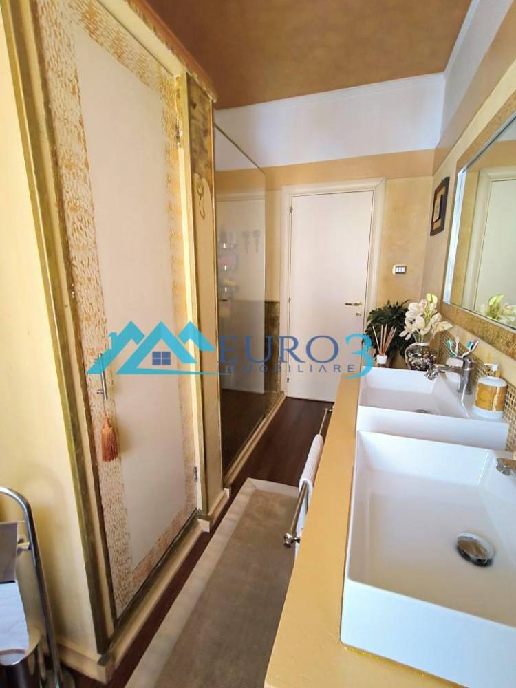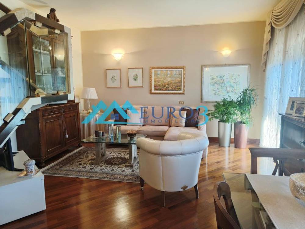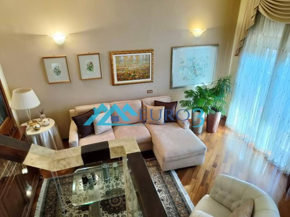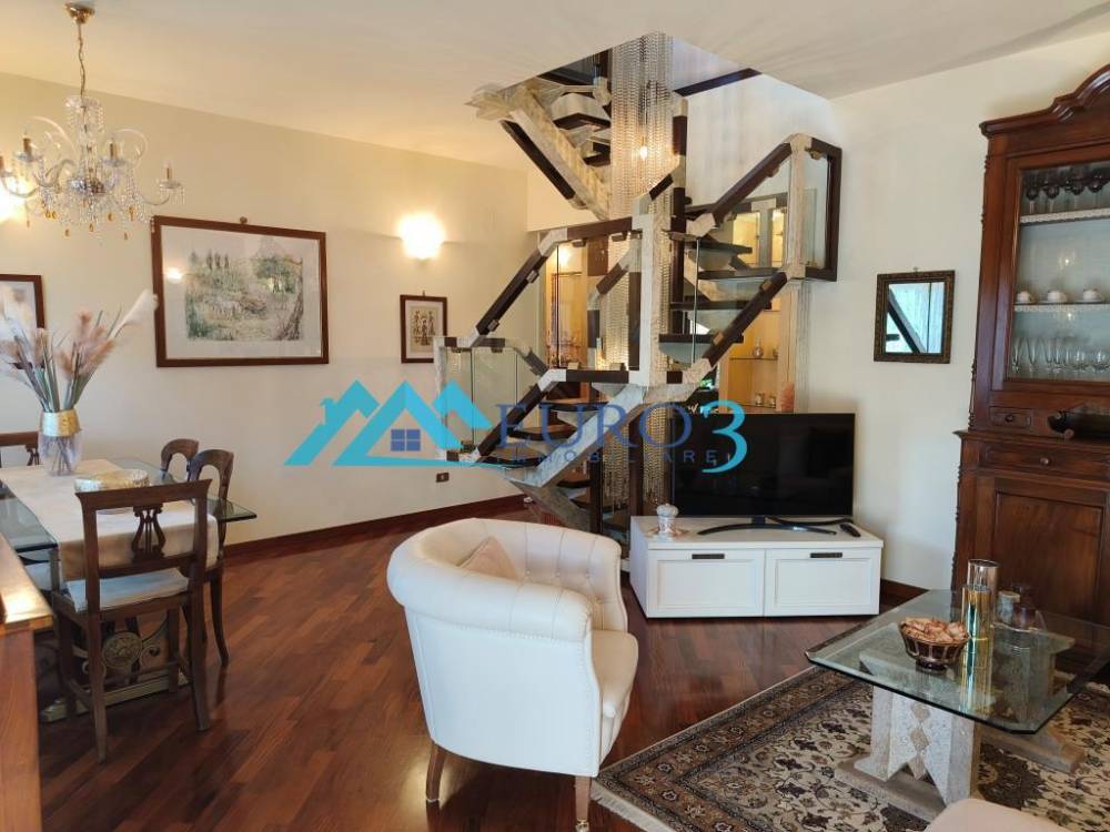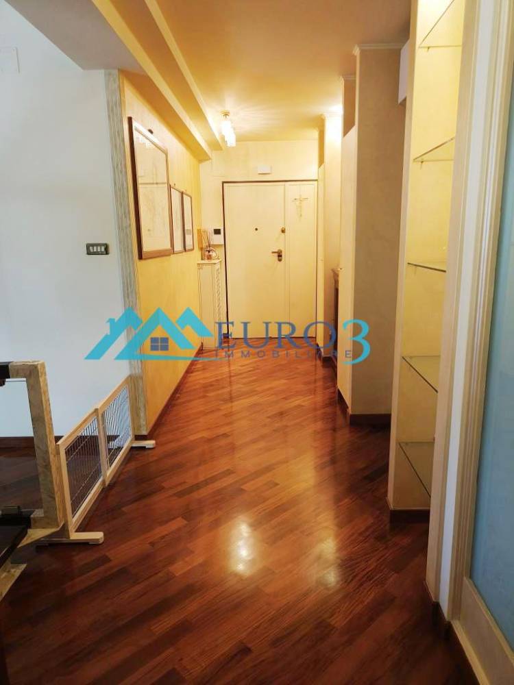L'immobile è in condizioni perfette, con infissi nuovi e climatizzatori internamente suddiviso in: ingresso-disimpegno, salone con terrazzina abitabile, cucina abitabile con balcone, corridoio che porta alla zona notte con armadiatura su misura, 3 camere di cui due matrimoniali, 2 bagni; al piano superiore, accessibile anche da scala condominiale per eventuale realizzo di secondo appartamento, troviamo 2 ampi locali finestrati e climatizzati, bagno con antibagno, locale lavanderia.