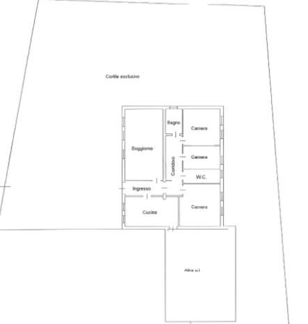 Il magazzino si compone di circa 33,48 mq, oltre ad un cortile di circa 715 mq.