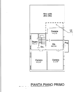 L'abitazione, con esposizione sud-est-ovest, ha una superficie lorda complessiva di circa 196 mq e si sviluppa al piano terra con veranda, ingresso, vano scala, cucina con zona cottura, soggiorno, disimpegno, sala da pranzo, antibagno e bagno per circa 96,7 mq, e al primo piano con disimpegno, tre camere e un bagno per circa 99,6 mq.