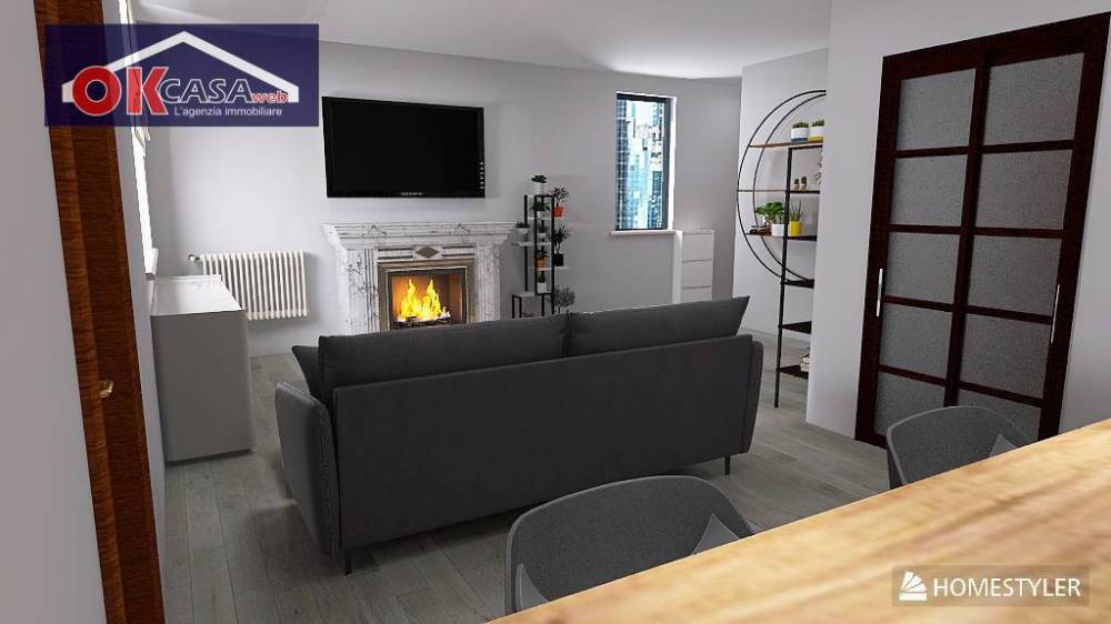 Labitazione si apre su un ingresso con corridoio che conduce a una cucina abitabile separata e completamente arredata, a un luminoso soggiorno di generose dimensioni con caminetto, perfetto per i momenti di relax, e a un bagno finestrato.