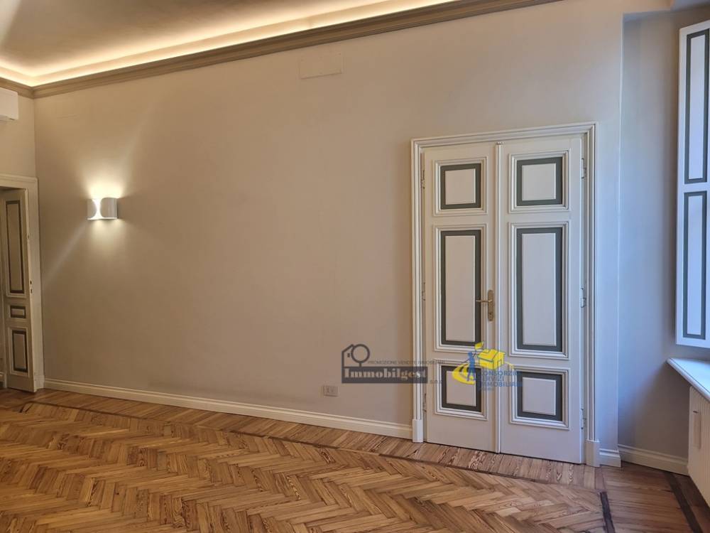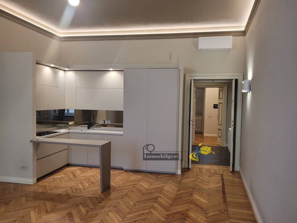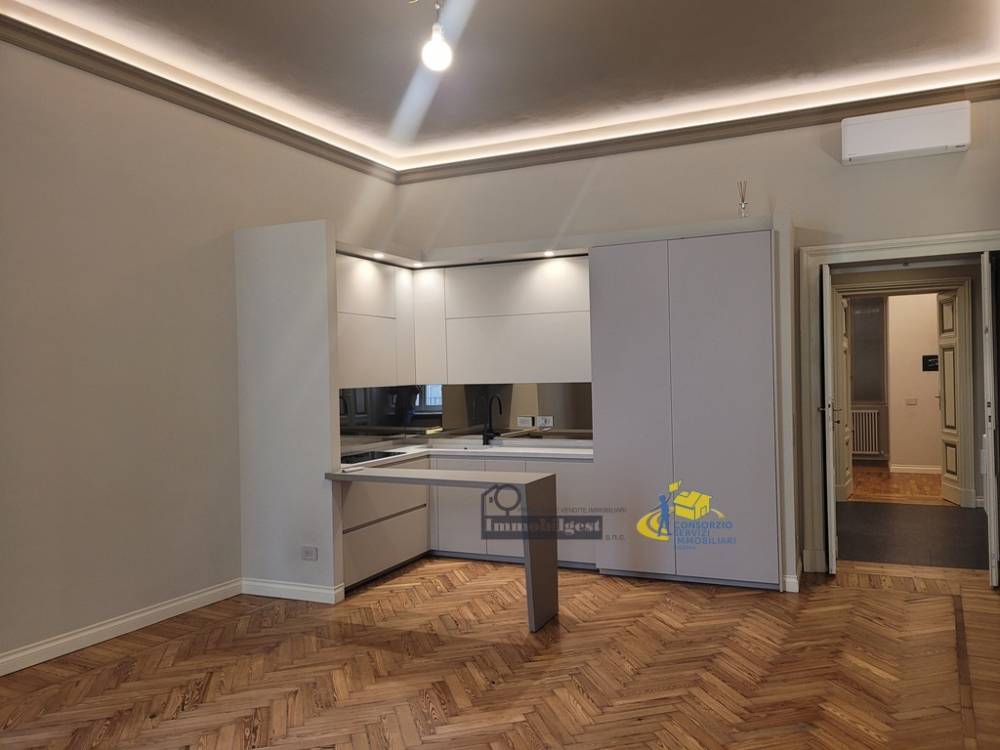 VIA FARINI laterale in prestigioso palazzo d'epoca, ristrutturato anche nelle parti comuni (tetto, facciata, vano scala), vendiamo al primo piano con ascensore, appartamento di circa 145 mq. Ristrutturato completamente nel 2022 salvando le caratteristiche originali. Ingresso, soggiorno con cucina a vista (Modulnova) che rimane in dotazione, due camere da letto con le rispettive cabine armadi, due bagni (una con finestra), ripostiglio attrezzato, cantina di grande dimensioni e comodo garage nelle immediate adiacenze. (in affitto) Dotazioni oltre la cucina: impianto di rinfrescamento con pompa di calore e allarme perimetrale e volumetrico. Euro: 445.000,00 Tel. 335-371219