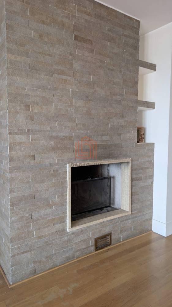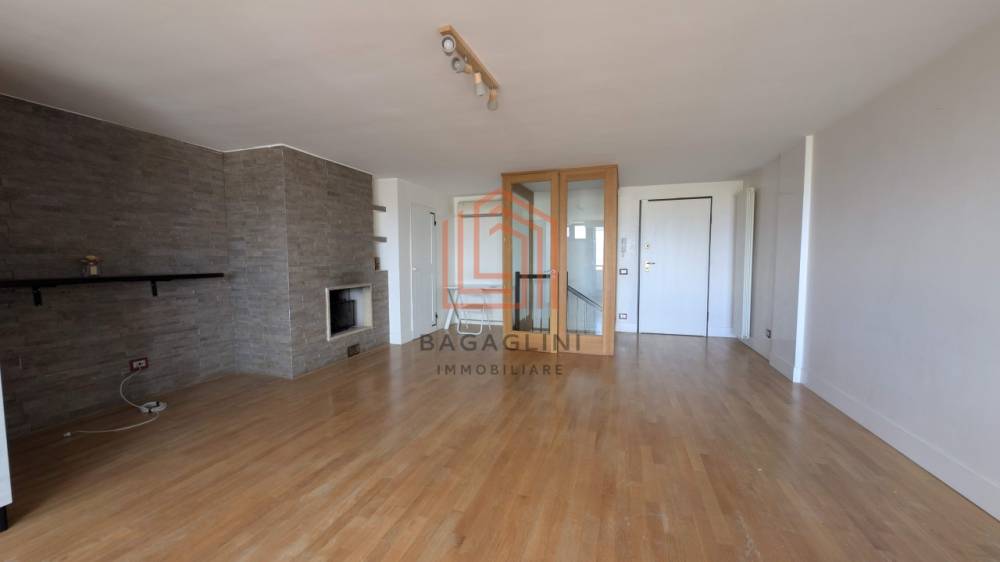 Piano Settimo – Zona giorno L’ingresso si apre su un ampio e raffinato soggiorno con camino a legna, cuore conviviale della casa, ideale per vivere momenti di relax in un’atmosfera calda e accogliente.