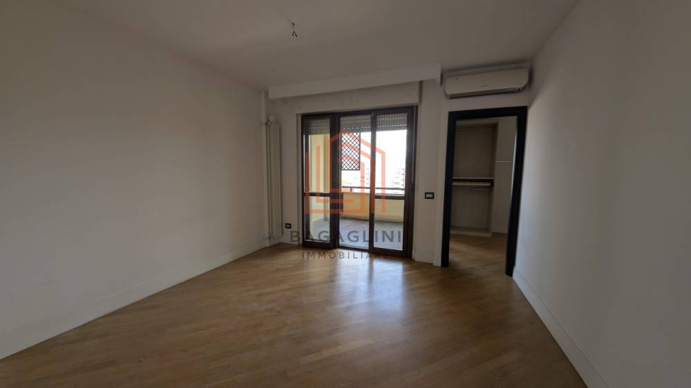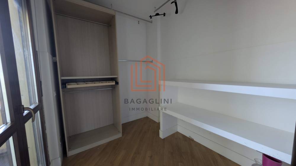 La camera matrimoniale, arricchita da una cabina armadio su misura, dispone anche di un balcone p