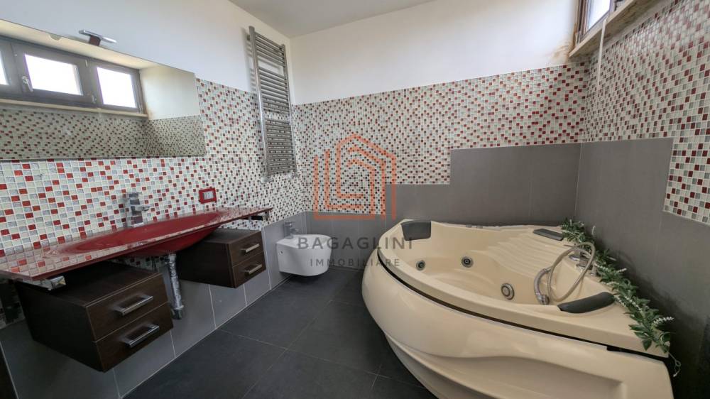 Il piano è completato da un comodo ripostiglio e da un bagno finestrato, impreziosito da una vasca idromassaggio, perfetta per concedersi momenti di benessere.