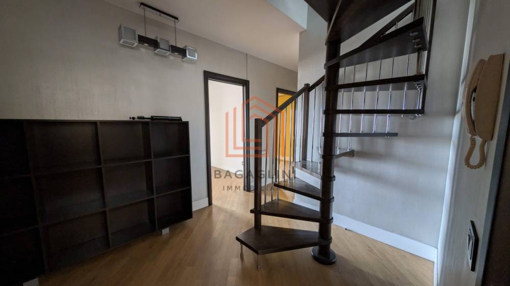 La disposizione interna, con doppio ingresso indipendente (uno per ciascun piano) e scala interna di design, offre massima praticità e continuità tra i due livelli.