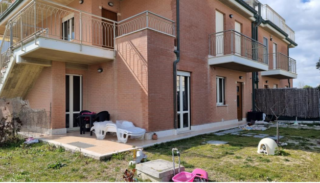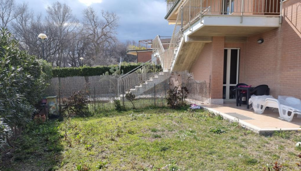 Appartamento a Porto Sant'Elpidio (FM), in Via Ravenna, con affaccio su corte pertinenziale esclusiva di circa 125 mq, sistemata a giardino privato e recintato. L'abitazione è composta da una zona giorno con ingresso-soggiorno e angolo cottura, e da una zona notte con disimpegno, camera matrimoniale con bagno privato, locale pluriuso attualmente adibito a cameretta e secondo bagno. Dalla cameretta si accede, tramite scala interna, al garage situato al piano sottostante. Soluzione comoda e ben distribuita, ideale per chi desidera spazi esterni privati in un contesto residenziale tranquillo e funzionale.