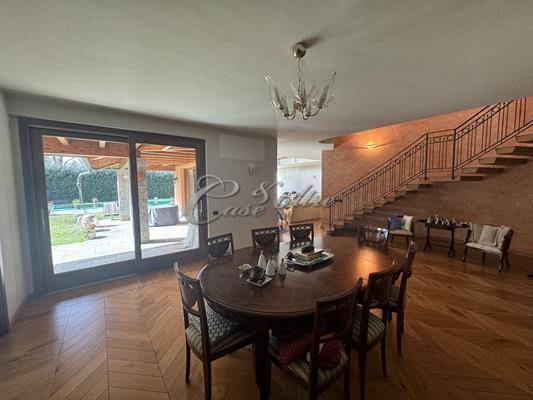 CARIMATE: villa singola di c.a. totali 570 mq disposta su tre livelli composta da piano terra: ingresso, soggiorno a doppia altezza con camino, sala da pranzo, cucina abitabile, disimpegno, bagno di servizio, dispensa, ripostiglio, lavanderia, cantina, disimpegno e taverna/locale hobby con camino; piano primo: soppalco, disimpegno, tre camere da letto con due bagni, disimpegno, camera da letto padronale con bagno "en suite" e cabina armadio; piano mansarda: locale open space, locale hobby e bagno. Autorimessa quadrupla. Giardino c.a. 1.100 mq. Centrale termica. Piscina. Portico c.a. 30 mq. Balcone c.a. 15 mq. Locali tecnici piscina. Posti auto interni.