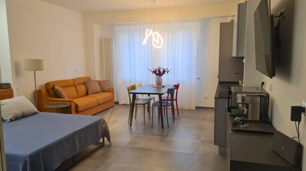 Appartamento monolocale delle dimensioni e 51 m² circa, composto da ingresso su corridoio, unica ampia stanza con soggiorno ed angolo cottura e zona letto, un comodo bagno, ripostiglio. L'appartamento si presenta in perfette condizioni essendo stato oggetto di una totale ristrutturazione con nuovi pavimentazioni, nuovi impianti a norma, climatizzazione, nuovo bagno, nuovi infissi. Localizzato in una posizione straordinaria e centralissima, con la faccio direttamente sulla centralissima piazza Fazzini.