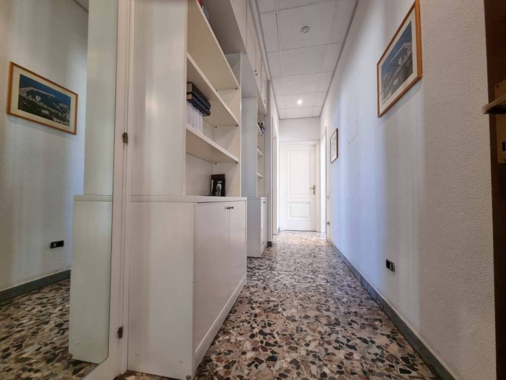 L'immobile è composto al piano terzo da una cucina abitabile, uno spazioso soggiorno, un disimpegno, un ripostiglio, una camera matrimoniale, una camera singola, uno studio, un bagno e due balconi.