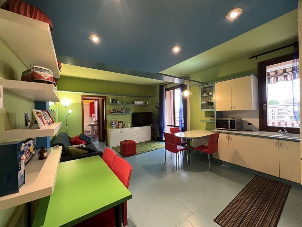Al terzo piano di un piccolo contesto proponiamo un appartamento di circa 60 metri quadri oltre terrazzo. La zona giorno ha un ambiente living, spaziosa e molto funzionale, dove troviamo inoltre una cucina angolare con spazi ben definiti, una parete attrezzata per il mobile del soggiorno e un comodo divano. Il terrazzo ha la possibilità di cenare o pranzare all'esterno. Nel disimpegno troviamo un angolo predisposto per lavatrice e spazio lavanderia. Il bagno è provvisto di vasca e doccia, e per finire la camera matrimoniale ha parquet a terra.