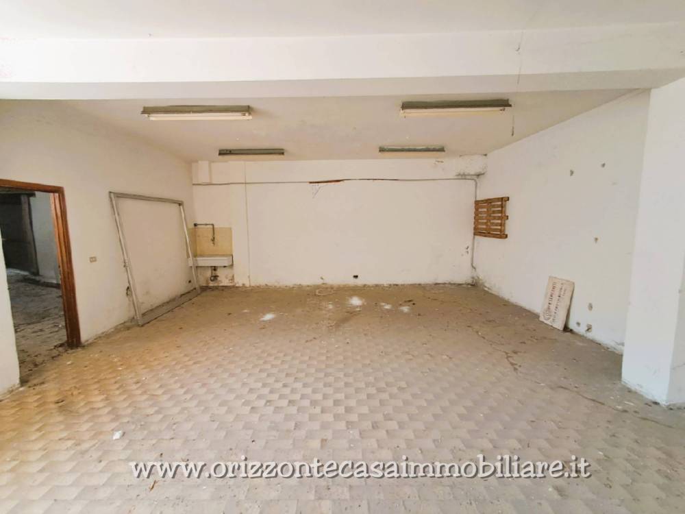 E composto da due grandi locali più servizi igienici; le pareti esterne sono libere su tre lati e controterra per la parete esposta a nord/ovest. La pavimentazione è in ceramica, gli infissi sono in metallo così come anche la serranda di ingresso.
