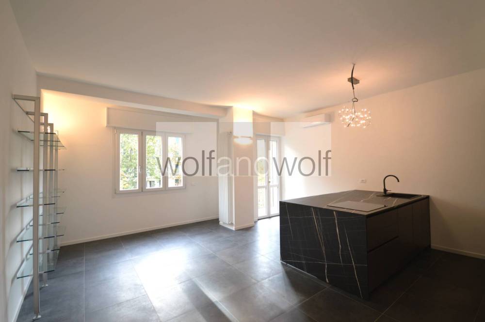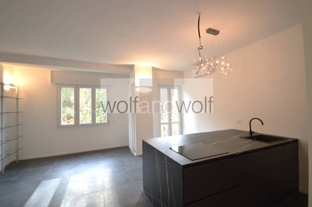 Appartamento ristrutturato posto al terzo piano con ascensore, composto da: ingresso in ampio living con cucina a vista, arredata, con penisola, con piano a induzione e parete attrezzata, camera da letto non arredata, bagno con doccia e sanitari sospesi, ripostiglio in quota, due balconi e solaio. Tutti i serramenti sono triplo vetro con apertura a battente e vasistas ed anche posizione anti condensa, impianto di condizionamento. Disponibilità locazione a società.