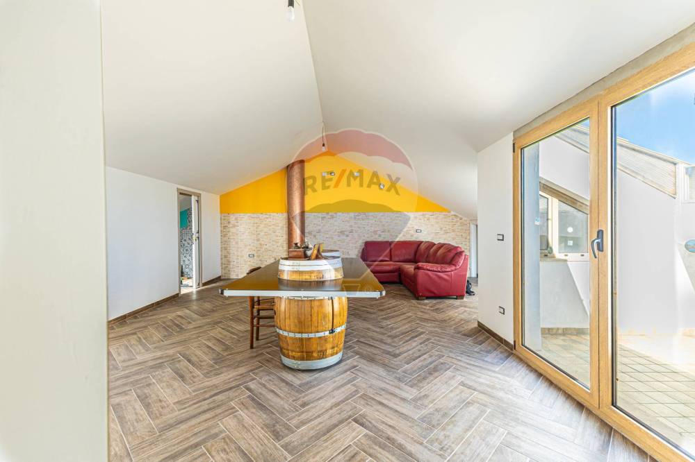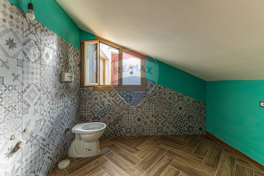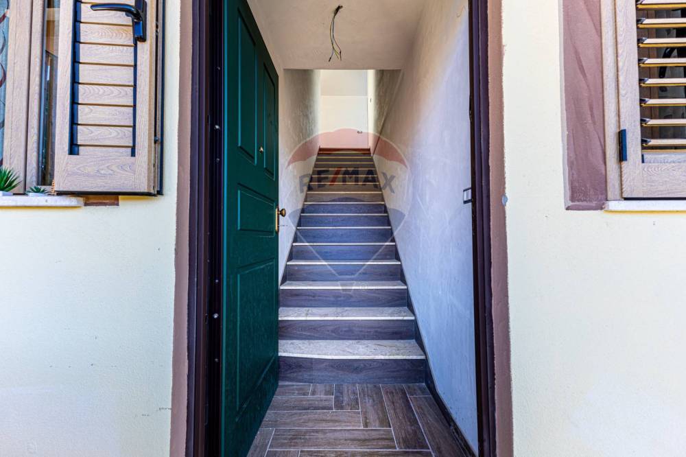 La casa si trova su un piano rialzato, rispetto alla porta d'ingresso. Le scale ci conducono alla zona giorno composta da ampio salone con alte volte a doppio spiovente - sala da pranzo con angolo cottura e possibilità di poter usufruire della predisposizione del camino, bagno con doccia, zona disimpegno - ripostiglio ed uscita sui due terrazzi (con esposizione a Nord e a Sud), che vi daranno modo di poter godere su un piacevole panorama che guarda il paese di Usini ed il paesaggio circostante e di godere di momenti di tranquillità in compagnia delle persone care.
