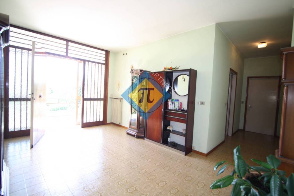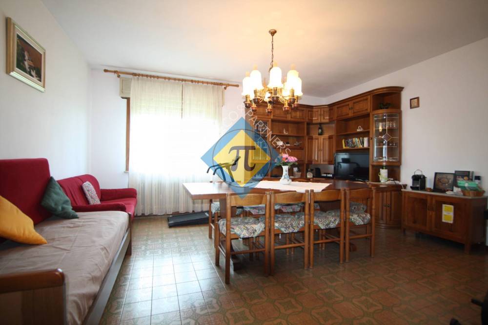 Il soggiorno è luminoso e si affaccia su un balcone, perfetto per godersi momenti di relax all'aperto.