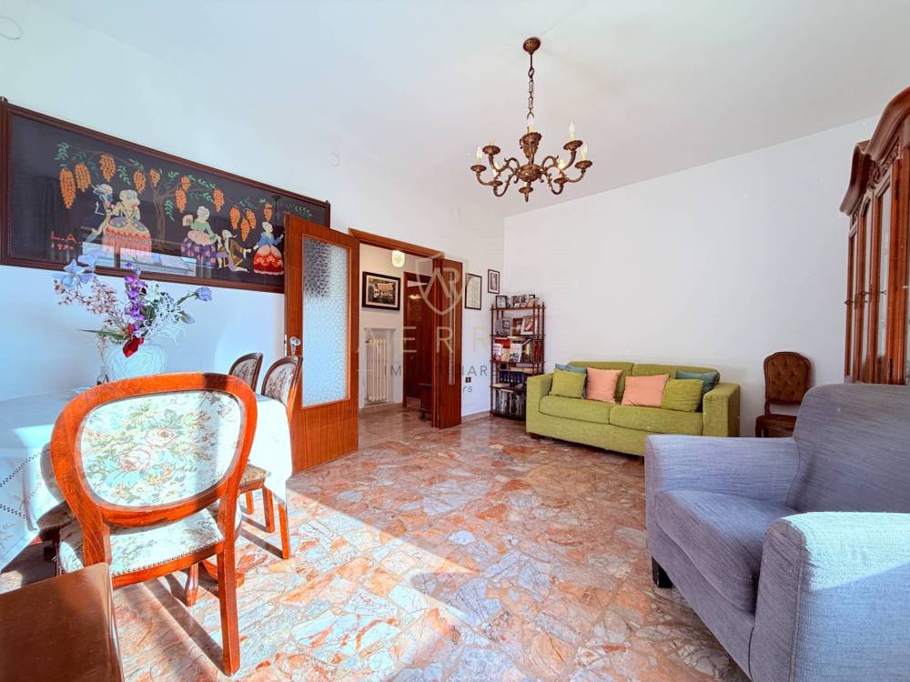 Ha una superficie di 107 metri quadrati catastali così suddivisa: ingresso su lungo disimpegno, soggiorno, cucina abitabile, 2 camere da letto matrimoniali, ripostiglio e 1 bagno con la doccia. Gli spazi sono ampi e luminosi, il che lo rende perfetto per chi ama avere tanta luce naturale in casa. Inoltre nella parte retrostante abbiamo un garage di circa 30mq, attualmente utilizzato come ambiente pluriuso.
